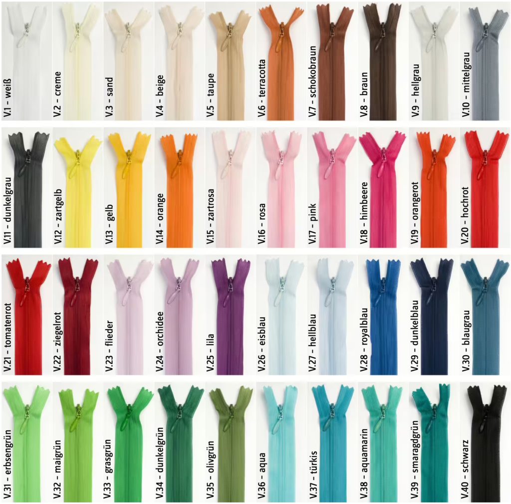 Für die Sofakissen stehen diese Reißverschlüsse zur Verfügung: